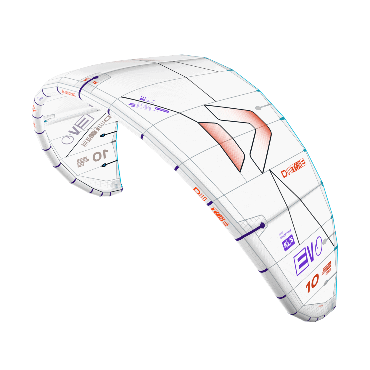 Introducing the Duotone Evo SLS Concept Blue, the more sustainable performance allrounder designed for progressive riders who seek versatility across freeride, freestyle, and wave riding. Crafted from innovative materials including undyed fabrics, a bio-based bladder, and recycled plastic components, the Evo SLS Concept Blue combines exceptional performance with a commitment to environmental responsibility. This Concept Blue version of the Evo SLS delivers explosive lift and dynamic jumping, providing outstanding hangtime that allows for technical tricks and adventurous sessions on the water. Engineered for maximum control in all conditions, the Evo SLS Concept Blue empowers riders to elevate their performance while reducing their environmental footprint. One of the highlights of the Evo SLS Concept Blue is its faster turning capability, resulting in a more playful feel. The refined tip construction features more aggressive tapering and an additional leading edge segment, increasing both steering speed and responsiveness. This enables quick adjustments to direction, whether you're carving through waves or launching into the sky. With improved bar feedback and handling, the kite enhances your connection to the ride. Changes to the canopy attachment at the tip provide a cleaner and more balanced bar feel, making it easier to navigate dynamic conditions with confidence. The Evo SLS Concept Blue also offers intuitive and responsive steering. A better transfer of steering forces into the canopy allows for direct and predictable reactions to bar inputs, ensuring that every maneuver feels fluid and controlled. Enhanced stability is achieved through reduced tip flutter during loops and tight turns, thanks to structural improvements in the tip area. This minimizes flutter during aggressive maneuvers, ensuring you maintain control and precision throughout your ride. For freestyle performance, the Evo SLS Concept Blue excels hooked as well as unhooked. With increased turning speed and stability, kiteloops become quicker, and the kite catches more reliably after rotations, giving you the confidence to experiment with your tricks. Embrace the combination of sustainability and performance with the Duotone Evo SLS Concept Blue, the kite that adapts to your riding style while taking into consideration our planet's future. Experience the freedom to ride knowing you are making a positive impact!